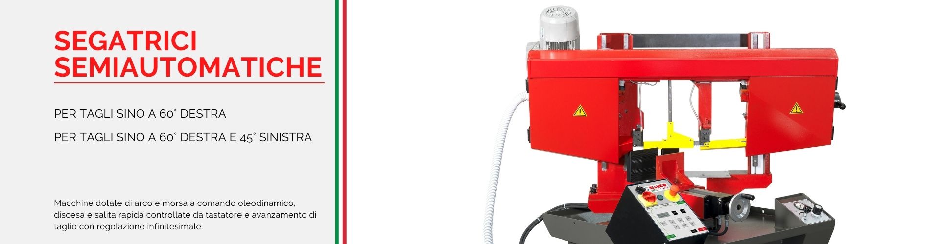 Macchine dotate di arco e morsa a comando oleodinamico, discesa e salita rapida controllata da tastatore e avanzamento di taglio con regolazione infinitesimale.