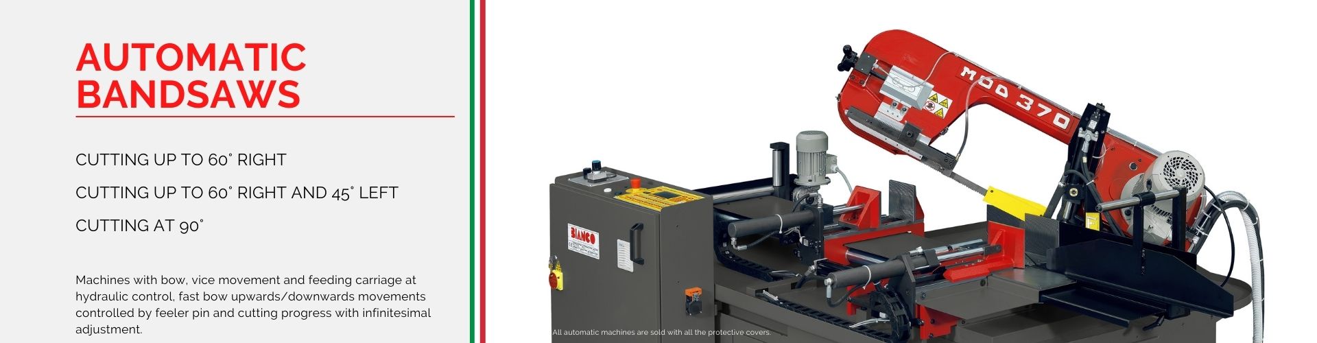 Machines equipped with arc and vise with hydraulic control, rapid descent and ascent controlled by a feeler and cutting progress with infinitesimal adjustment.